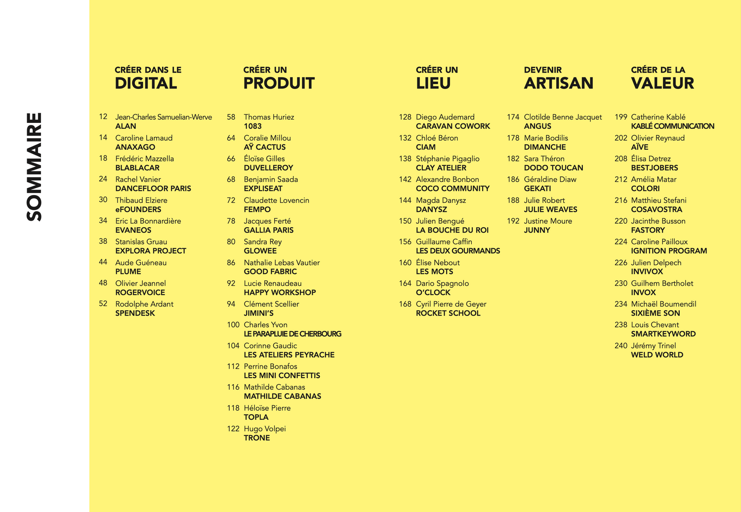 5 Chapitres et plus de 50 interviews, avec une parité hommes-femmes. Découvrez des portraits sans langue de bois qui vous racontent comment ils ont créé leur entreprise, les galères rencontrées et solutions trouvées, comment ils ont réussi à convaincre des clients, combien de temps ils ont mis à se payer (...) et si c'était à refaire ?!